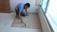 1.原先若沒有底板,先在地上釘上四分木板